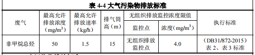 本項(xiàng)目廢氣主要為印刷過程中產(chǎn)生的非甲烷總烴和白乳膠揮發(fā)產(chǎn)生的非甲烷總烴,執(zhí)行《印刷業(yè)大氣污染物排放標(biāo)準(zhǔn)》(DB31/872-2015)表 2、表 3 標(biāo)準(zhǔn)。有關(guān)標(biāo)準(zhǔn)限值見表 4-4。