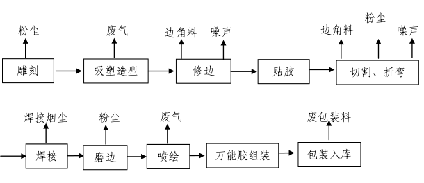 吸塑造型:此過程中產(chǎn)生少量的TVOC,經(jīng)活性炭吸附后達(dá)標(biāo)排放。