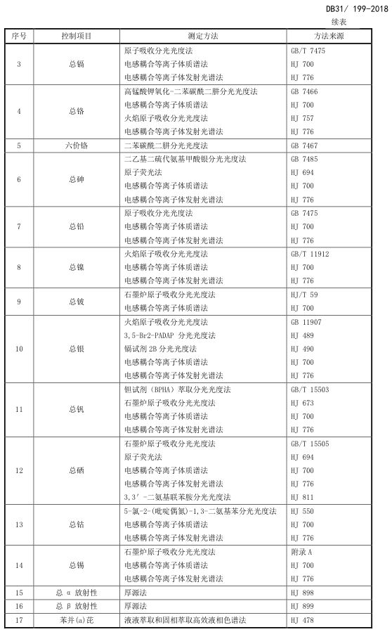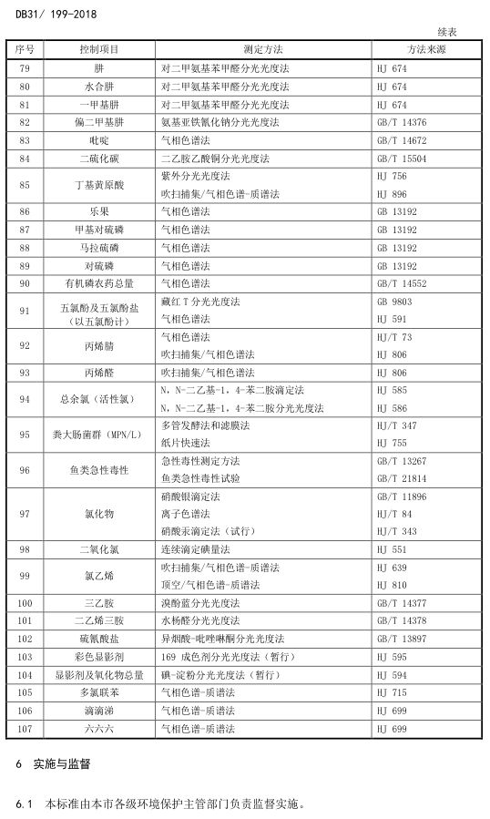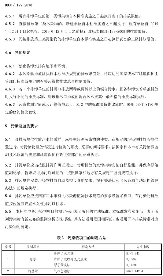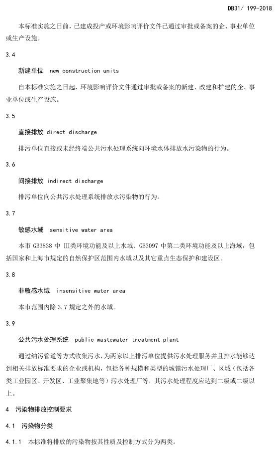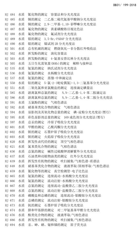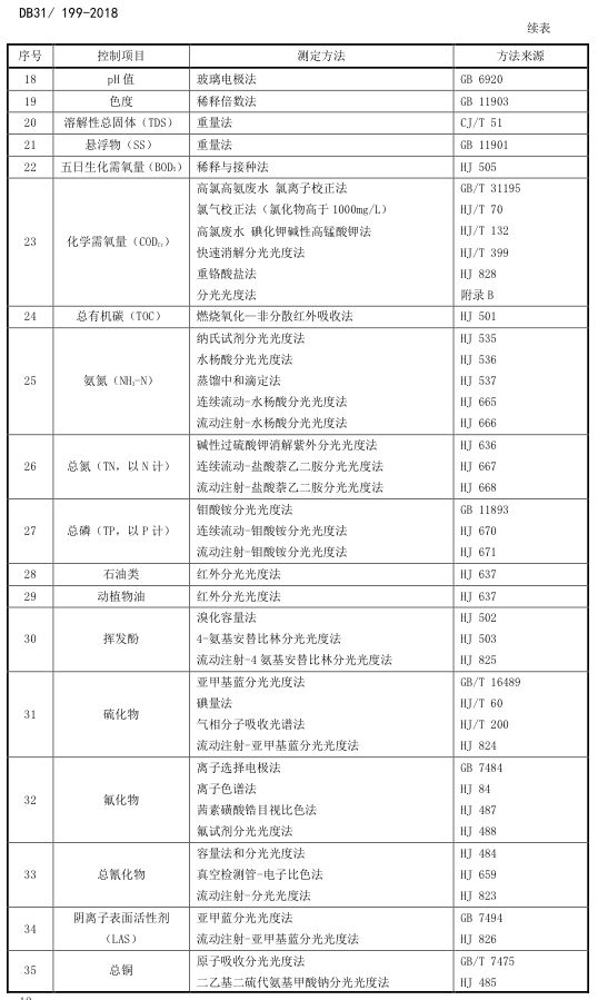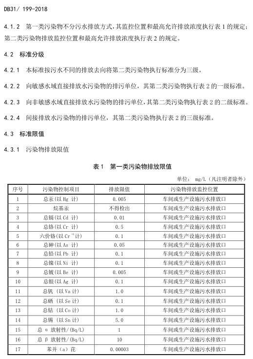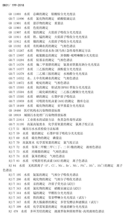 標(biāo)準(zhǔn)編號(hào)及名稱為:污水綜合排放標(biāo)準(zhǔn):DB31/199-2018,該標(biāo)準(zhǔn)自2018年12月1日起實(shí)施。