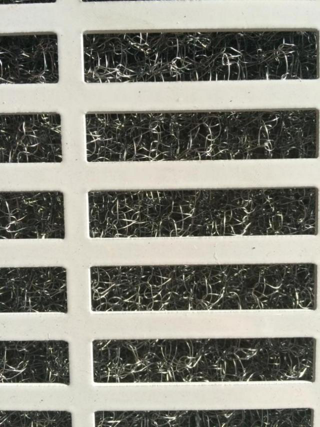 根據(jù)油霧顆粒大小、除霧要求,選用不同絲徑和不同編織方式的除霧器;根據(jù)油霧量的比重采取不同厚度的除霧器,不同排列結(jié)構(gòu)的除霧器,來達(dá)到分離油霧的目的。二級過濾不銹鋼絲網(wǎng)除霧器采用層遞式多級安置方式,增加比表面積,提高了不銹鋼除霧器的除霧效率,采用條形結(jié)構(gòu),當(dāng)氣體流速在適宜的范圍內(nèi)時(shí),當(dāng)絲徑在0.076-0.4 且霧沫粒度小于5μm,絲網(wǎng)除霧器的除霧效率一般可達(dá)95%。